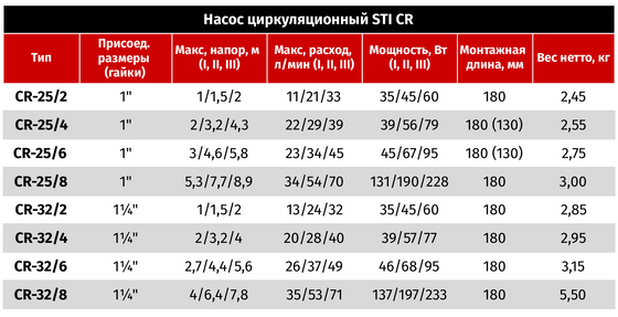 Насос циркуляционный STI CR 25/6-180 |